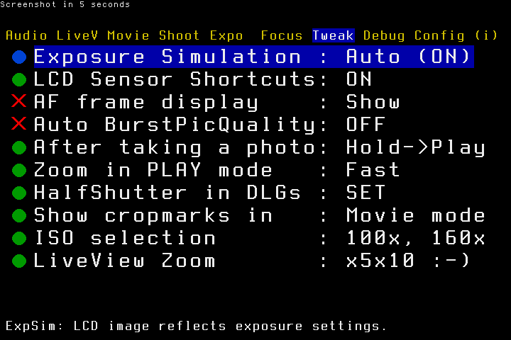 - Idle/Menus: ライブビュー使用時にオーバーレイ表示される透明のメニューを使用する時のみCanonのグラフィックスを復活させる。